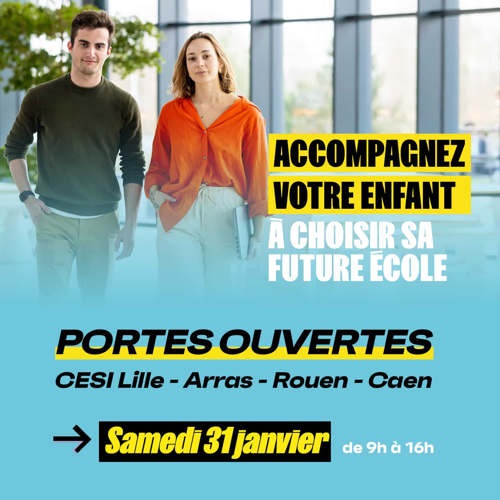 Venez découvrir CESI lors de la Journée Portes Ouvertes, le samedi 31 janvier de 9h à 16h sur le campus de Rouen !